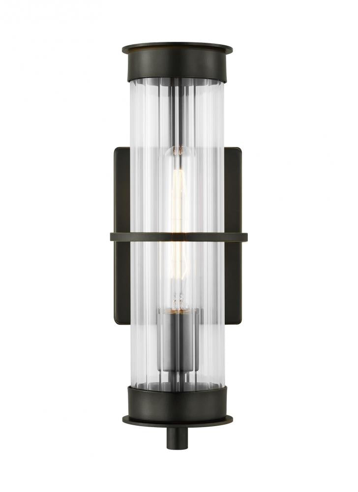 Clear fluted glass shades give the Alcona series a refined industrial look. The elegant square backplate and metal center ring provide a floating glass effect. The Alcona one light outdoor pendant fixture creates a warm and inviting welcome presentation for your home's exterior. Available in a handsome Black or Antique Bronze finish.