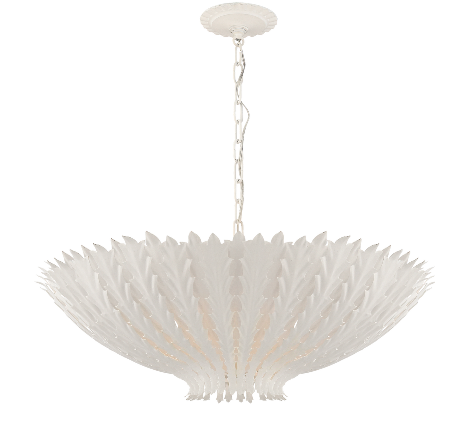 Product Info: This Hampton Medium Chandelier is designed by Aerin. This item comes with 6 ft of change and can be used a semi-flush mount. This is an Open box item, all sales are final. This item can be order in more quantity, price is subject to change. This price only applies to what we have in stock.
