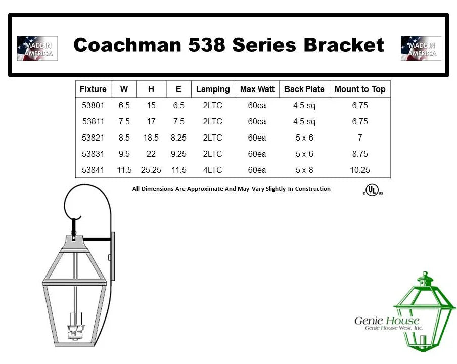 Product Info: This Wall Mounted Lantern is from the Coachmen Collection by Genie House. It is hand crafted and made here in the U.S.A. This series comes in a variety of sizes, finishes and glass options. This lantern has a glass top only. The Coachmen series is quick ship meaning the lead time is 3 weeks.