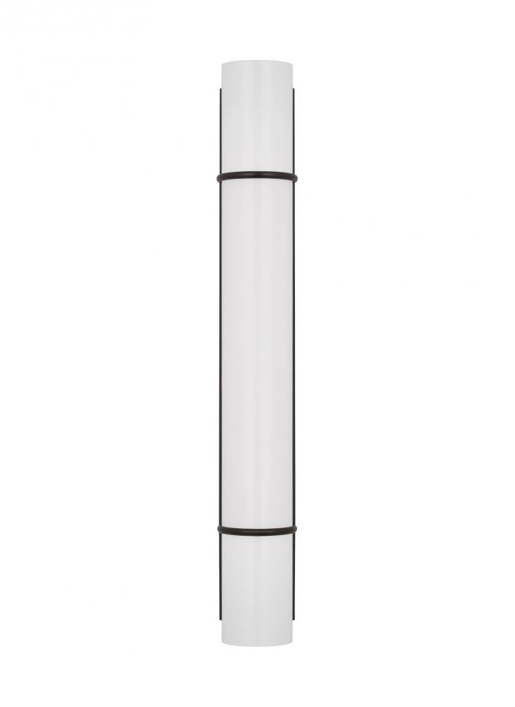 The Amelie Integrated LED vanity series by Chapman & Myers is a simplified cylindrical linear bath light with two metal rings inspired by a vintage cuff bracelet. Each sconce has a cylindrical glass shade accented by two metal rings on either end of the sconce and a metal back plate. Amelie is illuminated with custom-led panels to provide an even glow through the white glass shades. Available in three sizes and three finish options. Dimmable Integrated LED lamping with Damp location rating.