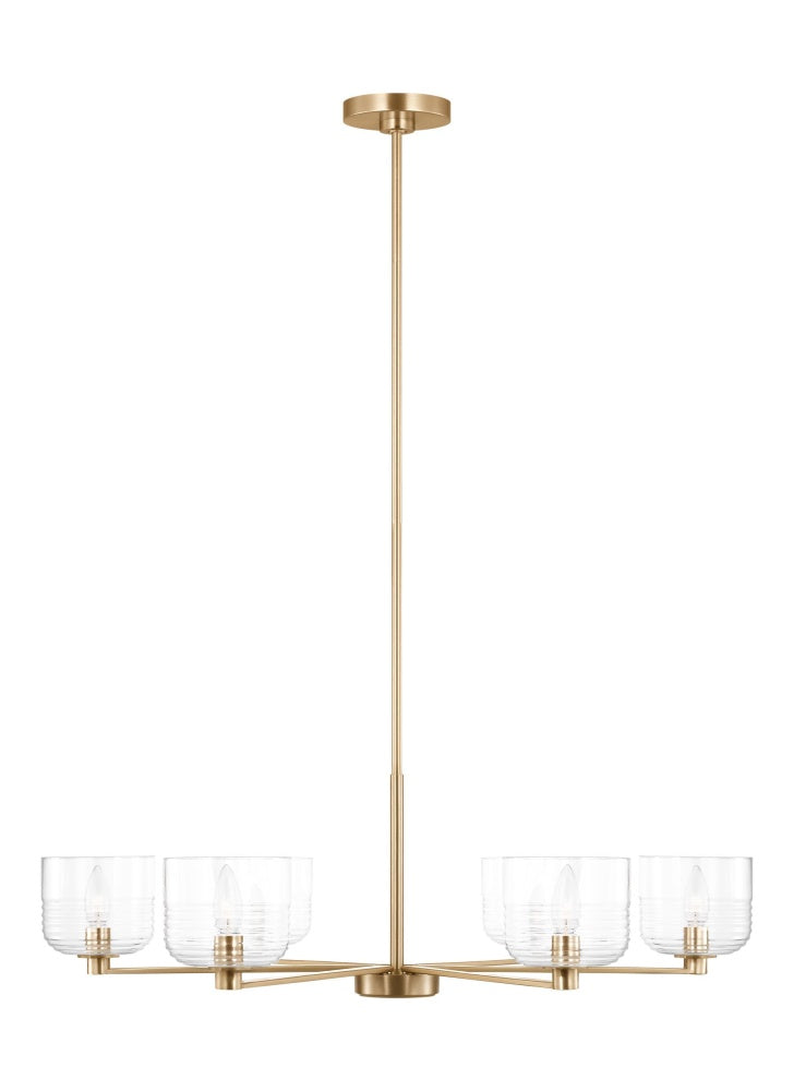 Paying homage to decorative gas lighting, the Lochdale fixture by Drew & Jonathan is defined by its clean, simple profile. The ribbed glass shades diffuse light while lending the design a touch of shine. This chandelier will bring an elegant glow to dining rooms, living rooms, foyers and kitchens.