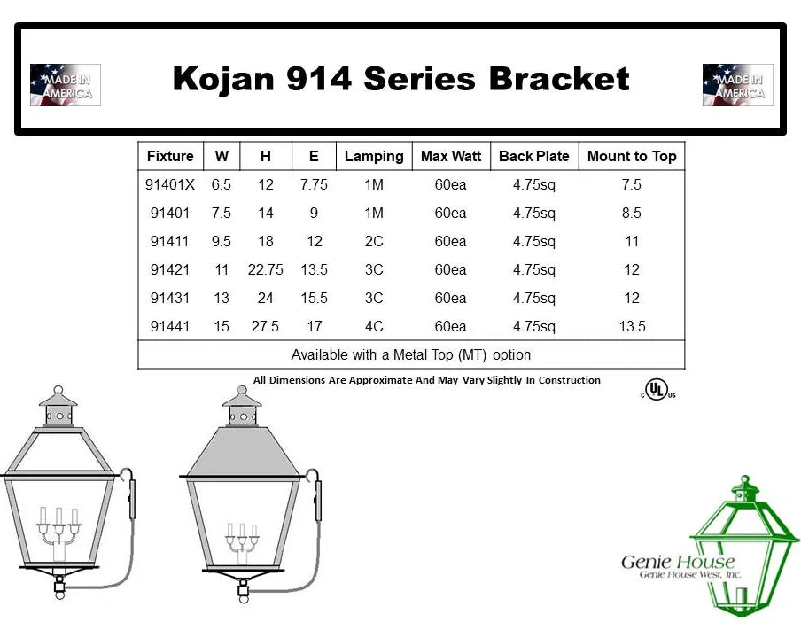 Product Info: This Exterior Wall Mounted Lantern is from the Kojan Collection by Genie House. It is hand crafted and made here in the U.S.A.This company typically ships in 6-8 weeks.This series comes in a variety of sizes, finishes and glass options. This lantern also has an option to have a metal or glass top.