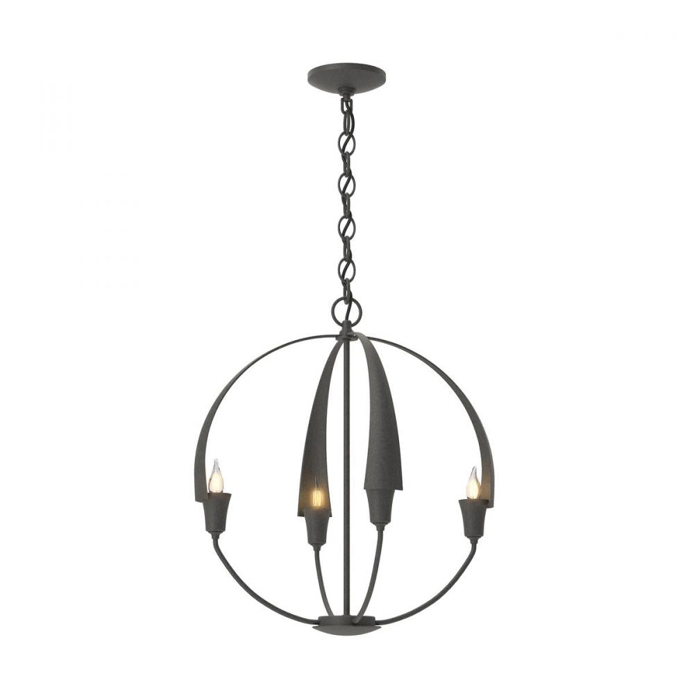 There's no need to make a choice between form and function - as part of the Cirque Collection, this chandelier delivers both. Four hand-forged, tapered steel petals merging at the sculpture's apex set the stage for our re-interpretation of the classic orb chandelier.