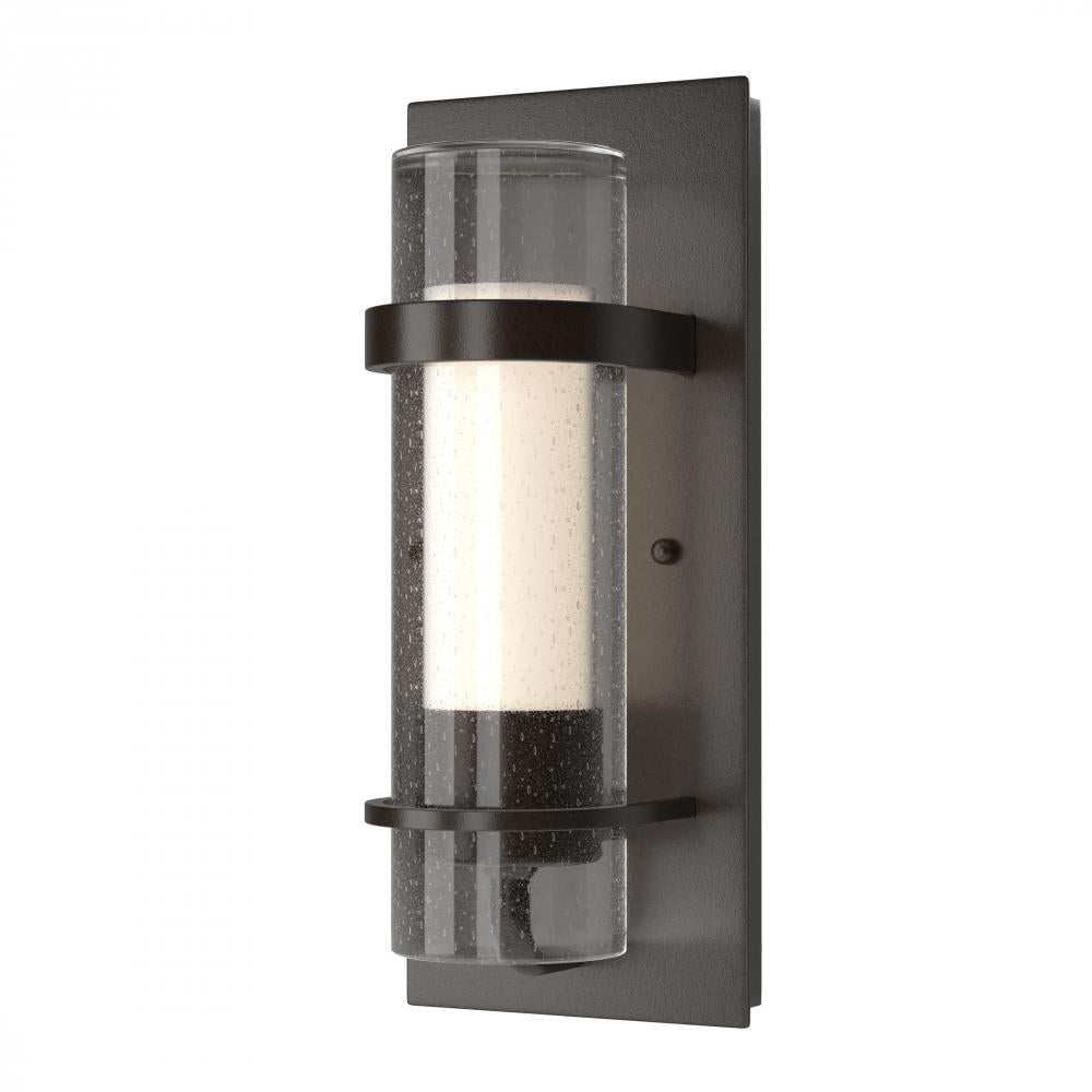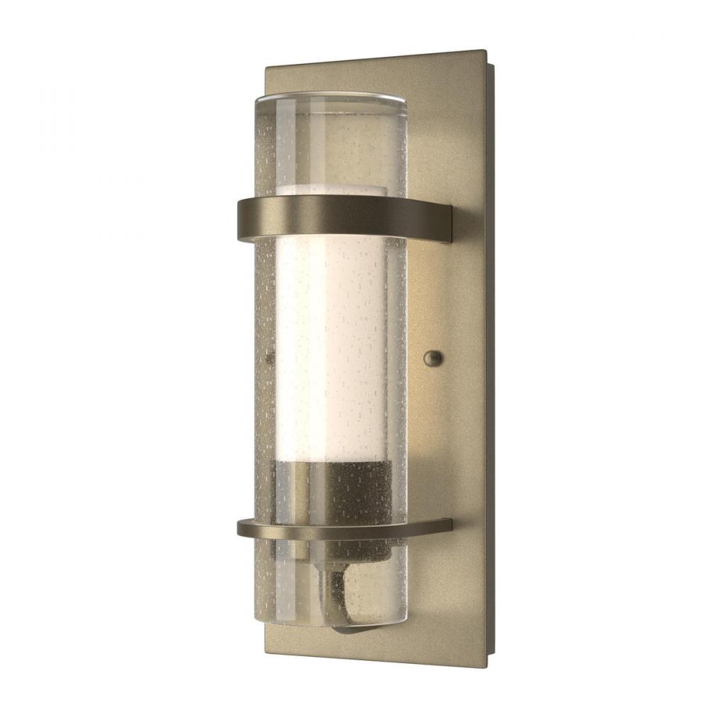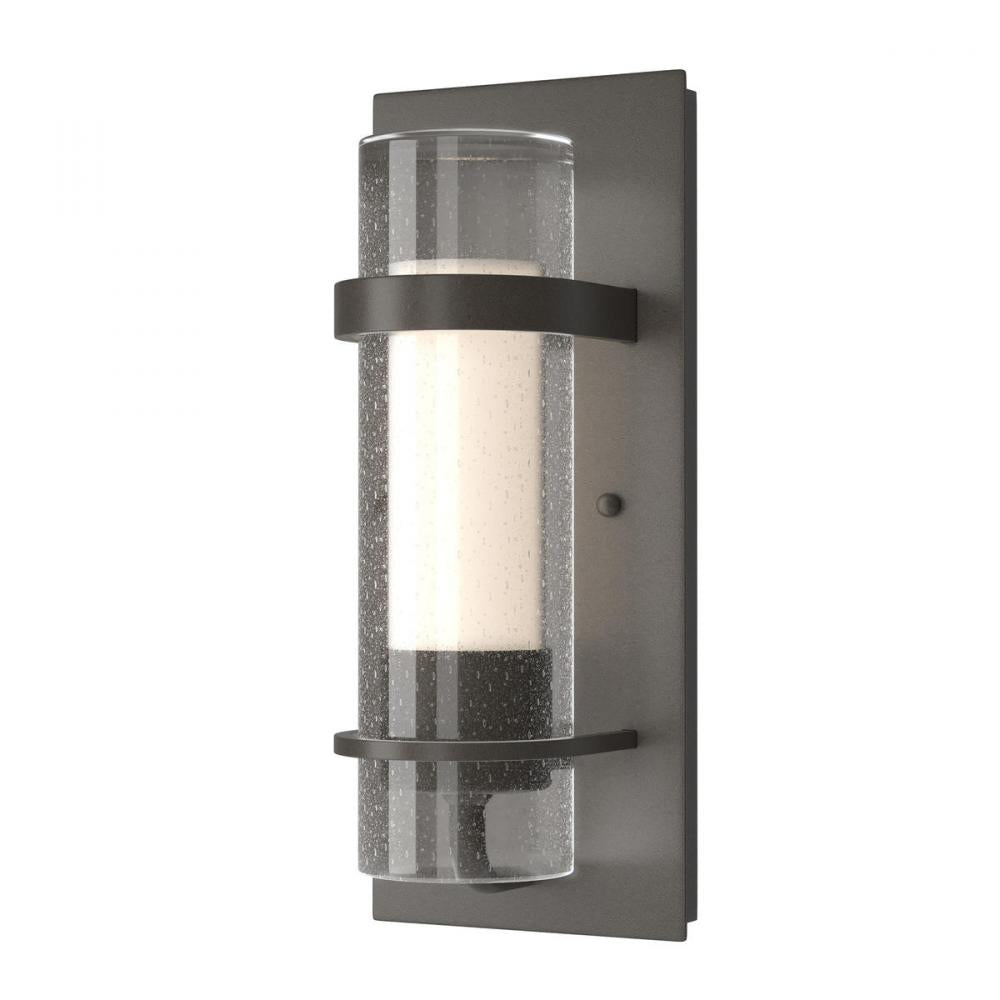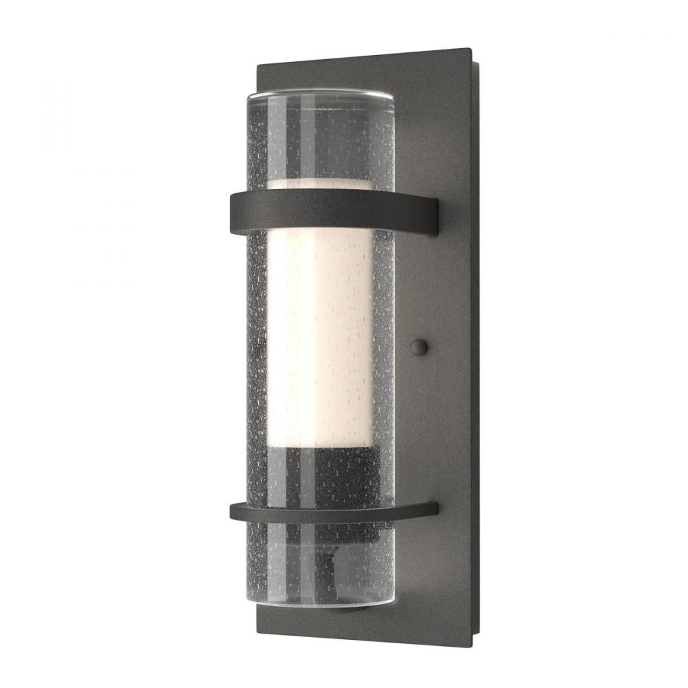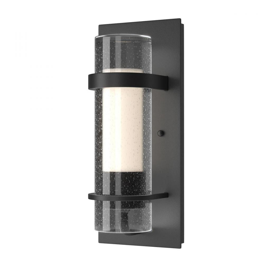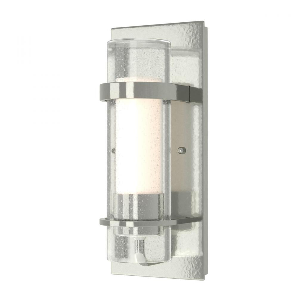 ADA Compliant, this Torch Indoor Sconce gives a contemporary look, with its double-glass, opal glass within a clear seeded glass cylinder. Crafted in steel and available in any of Hubbardton Forge's standard finishes.