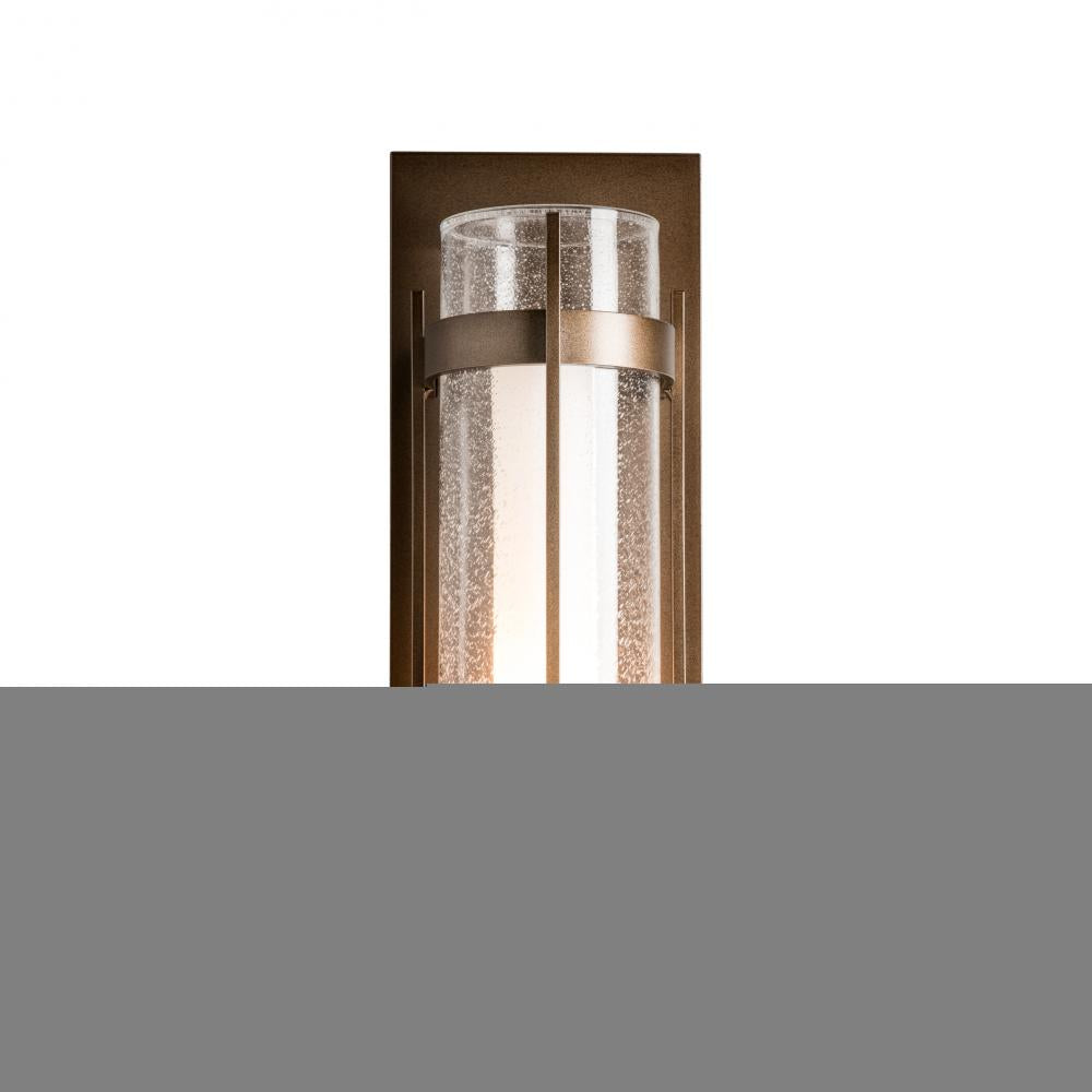 This Torch Large Outdoor Sconce, with its two hallmark circular metal bands and perpendicular metal accent, is available in all our robust Coastal Outdoor Finishes. The Torch Sconces are offered with a substantial and stunning seeded outer glass cylinder combined with a frosted inner glass for stylish, yet functional lighting. The Torch Outdoor Sconce is also available in a medium version.