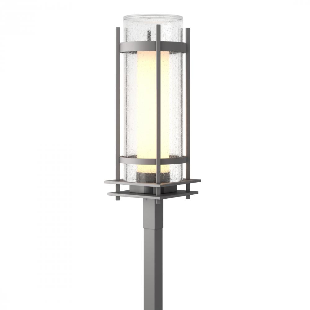 A contemporary look updates a Hubbardton Forge classic. Double-glass cylinders, with a frosted inner and clear seeded outer glass, light the path for guests. Adding both beauty and security to any property, the Torch Outdoor Post Light is appropriate for a wide variety of architectural designs.