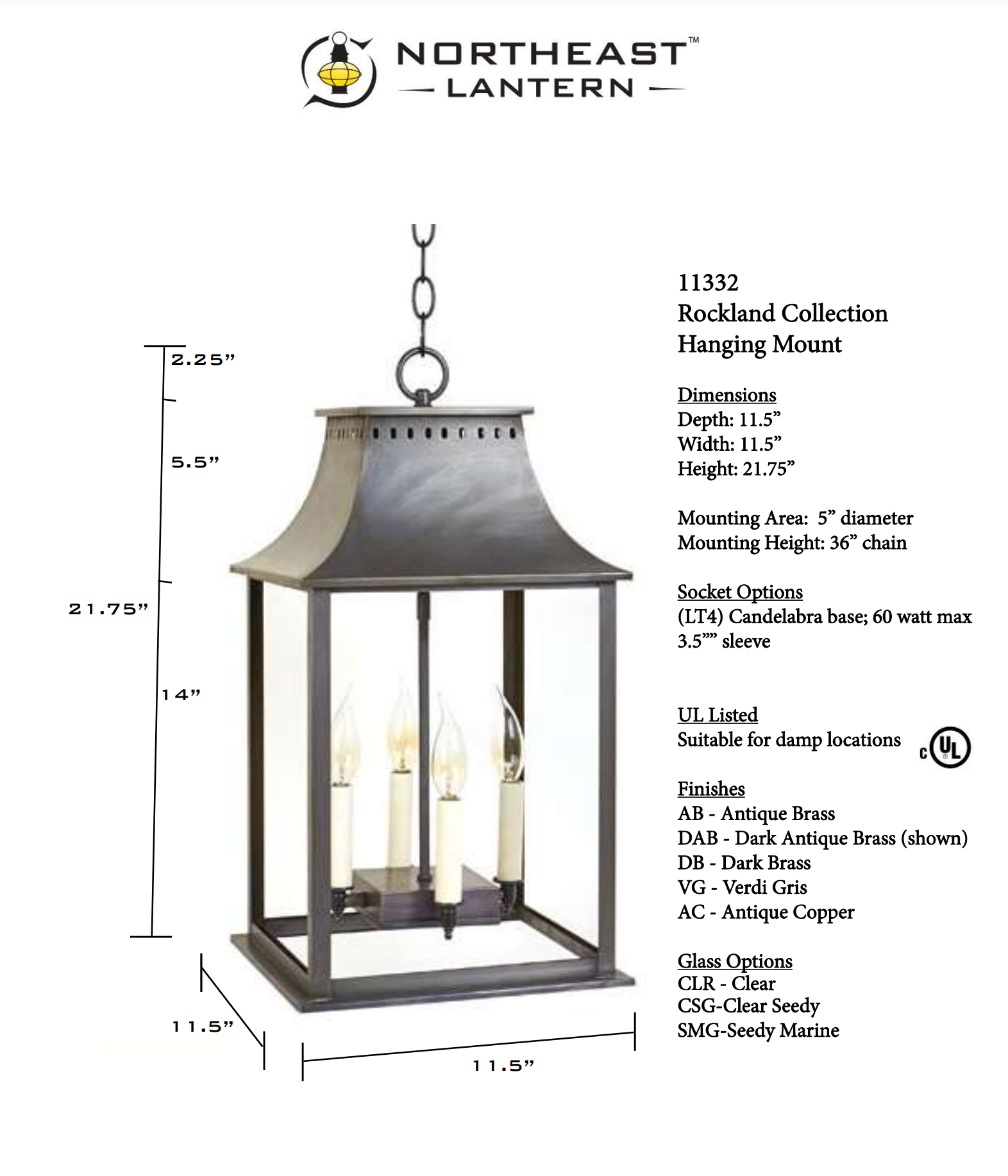 Product Info: This Northeast Lantern is Handmade in the USA. Each Lantern is individually custom made and typically takes six to eight weeks to ship. This Lantern comes in 5 Different finishes, and three different glass options. This lantern is available in a different size: 11312, and 11322.