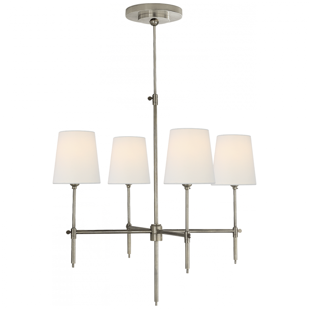 Bryant Small Chandelier in Bronze and Hand-Rubbed Antique Brass with Linen Shades